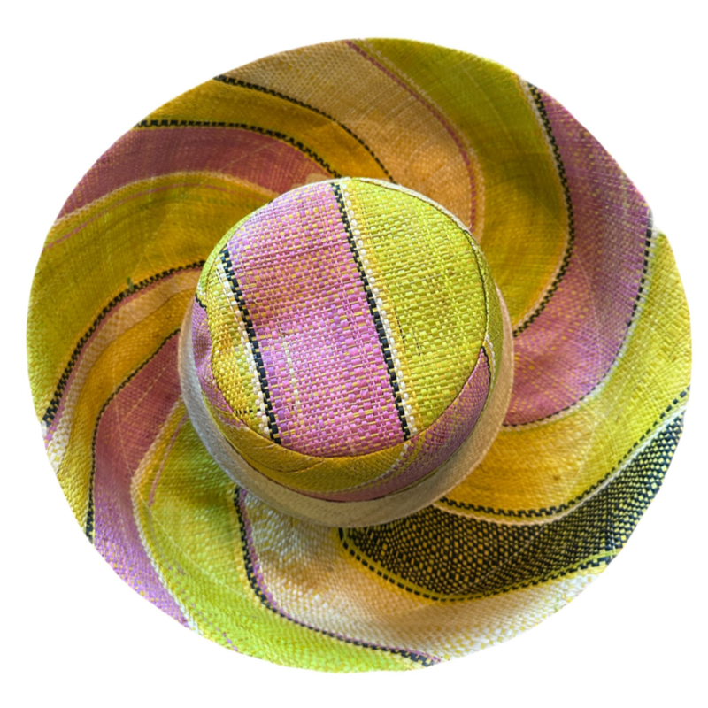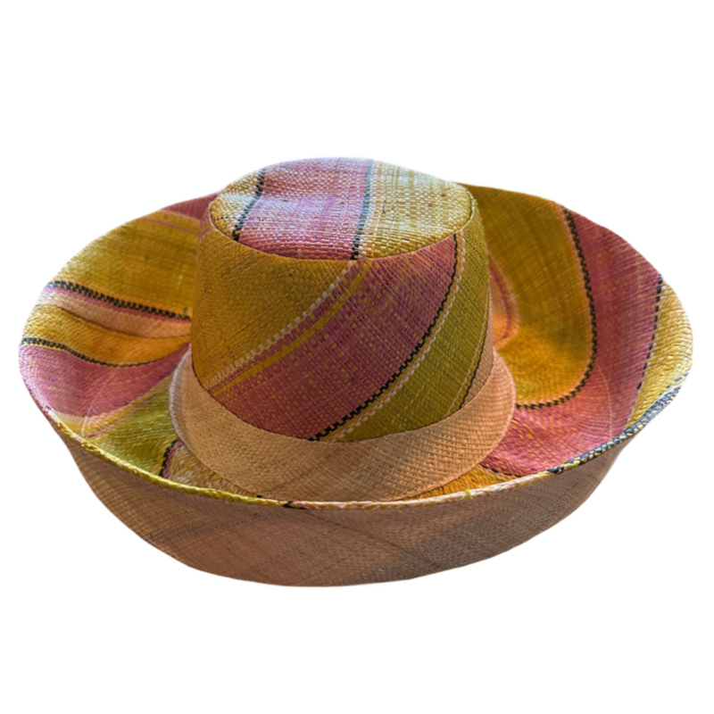 Je houdt de zon echt uit je gezicht en dankzij de vormbare brede rand kan je de hoed op heel veel leuke manieren dragen. De hoed is milieuvriendelijk geproduceerd van natuurlijke raffia en de kleuren zijn verkregen met behulp van een duurzame kleurstof op basis van groenten.