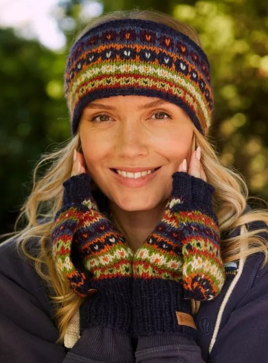 OverzichtDeze hoofdband werd door vrouwen in Nepal gebreid. Ook je oren blijven heerlijk warm!