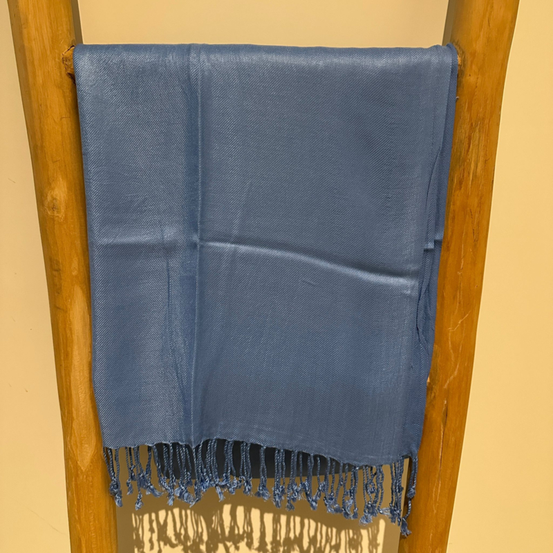 Voorjaarssjaal effen viscose jeansWe verkopen nu ook effen sjaals voor het tussenseizoen.