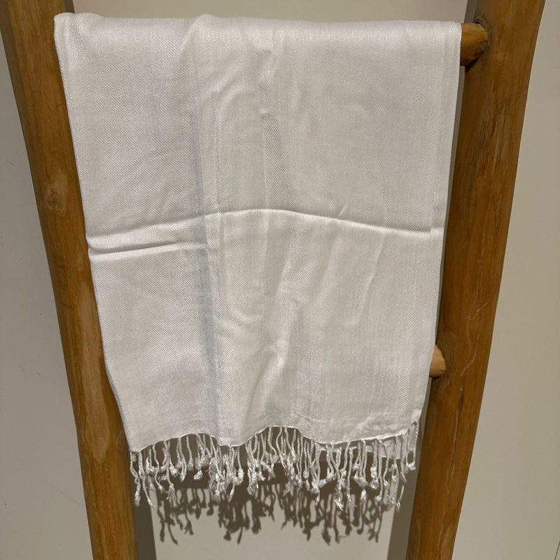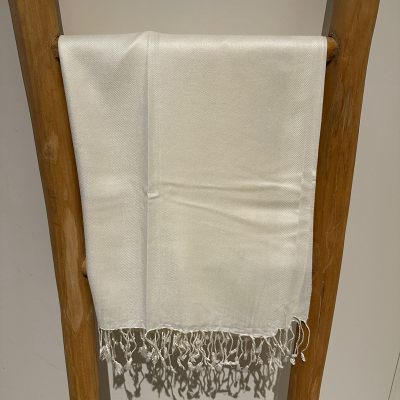 Voorjaarssjaal effen viscose wolwitWe verkopen nu ook effen sjaals voor het tussenseizoen.